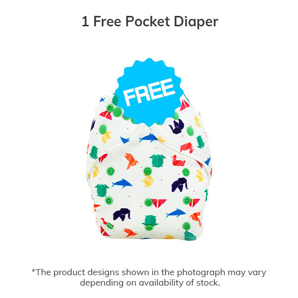 - 1 Free Pocket Diapers for when your baby is playing and active. Pocket Diapers offer reduced frequency of diaper changes and keep your baby comfy and dry during their playtime.